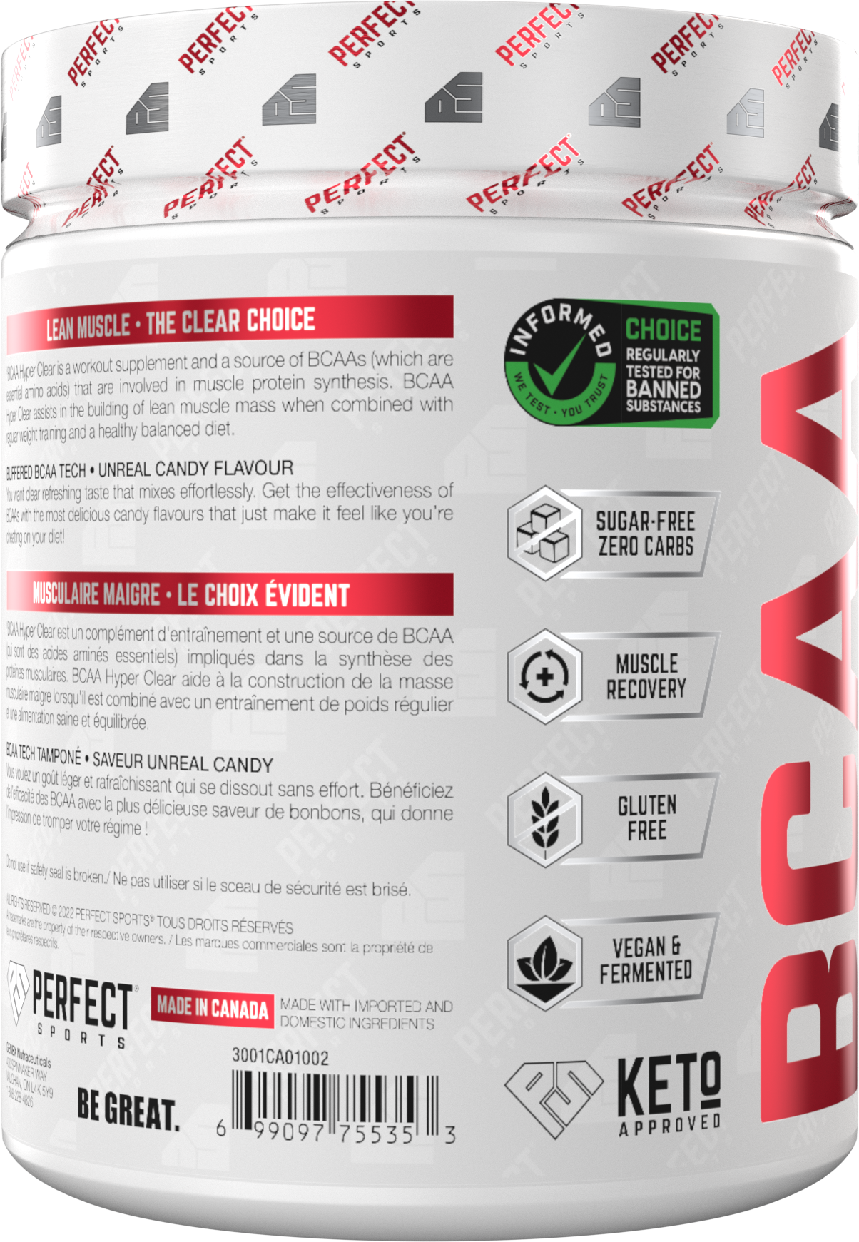 BCAA Hyper Clear delivers a refreshing and delicious boost to your workout with its clear-mixing formula, ensuring no unwanted residue or foam. Each serving is packed with 5g of vegan BCAAs in a 2:1:1 ratio, supporting muscle synthesis and recovery with zero sugars, carbs, or calories, making it an excellent choice for any fitness enthusiast. With Kana-Sol™ Buffered Technology, you get fast-absorbing amino acids that are easy on the stomach, and the product is third-party tested for WADA banned substances, assuring quality and integrity. BCAA Hyper Clear is not only effective but also a tasteful addition to your training regimen, keeping you hydrated and in peak performance mode.